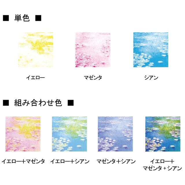 重ね合わせて楽しむスタンプセット。色の三原色の原理で、イエロー、マゼンタ、シアンのスタンプを重ね合わせるとフルカラーに!単色、2色の組み合わせも含め全7色のカラーが楽しめます。浸透印だからスタンプ台なしで連続捺印可能。メモ帳やノートに!いろんなところに押したくなる楽しいスタンプセットです!