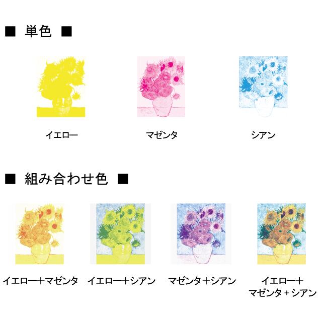 重ね合わせて楽しむスタンプセット。色の三原色の原理で、イエロー、マゼンタ、シアンのスタンプを重ね合わせるとフルカラーに!単色、2色の組み合わせも含め全7色のカラーが楽しめます。浸透印だからスタンプ台なしで連続捺印可能。メモ帳やノートに!いろんなところに押したくなる楽しいスタンプセットです!