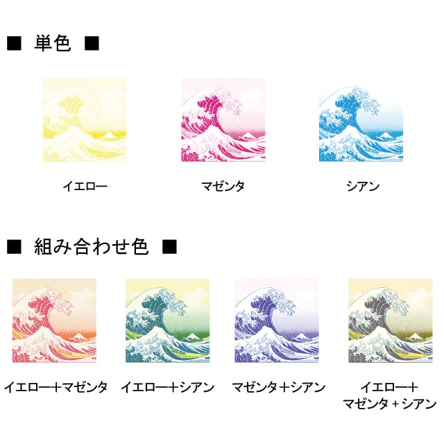 重ね合わせて楽しむスタンプセット。色の三原色の原理で、イエロー、マゼンタ、シアンのスタンプを重ね合わせるとフルカラーに!単色、2色の組み合わせも含め全7色のカラーが楽しめます。浸透印だからスタンプ台なしで連続捺印可能。メモ帳やノートに!いろんなところに押したくなる楽しいスタンプセットです!